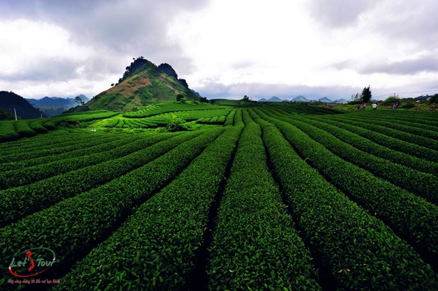 Xe đưa đoàn tới Nông Trường Chè, tìm hiểu về cuộc sống lao động tại nông trường chè Mộc Châu, lưu lại những tấm hình chụp xanh ngát giữa thảo nguyên đồi chè mênh mông.