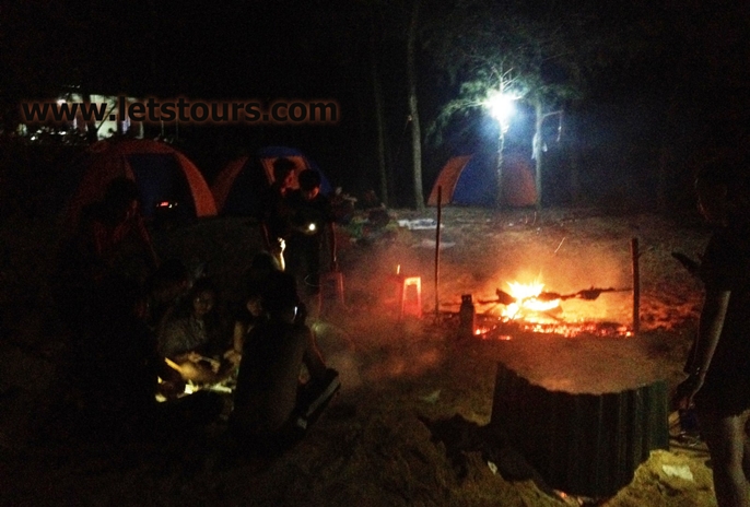 Buổi tối đốt Lửa trại nướng hải sản hoặc nướng Gà sẽ tạo cho du khách thấy ấn tượng bên biển Cái Chiên.